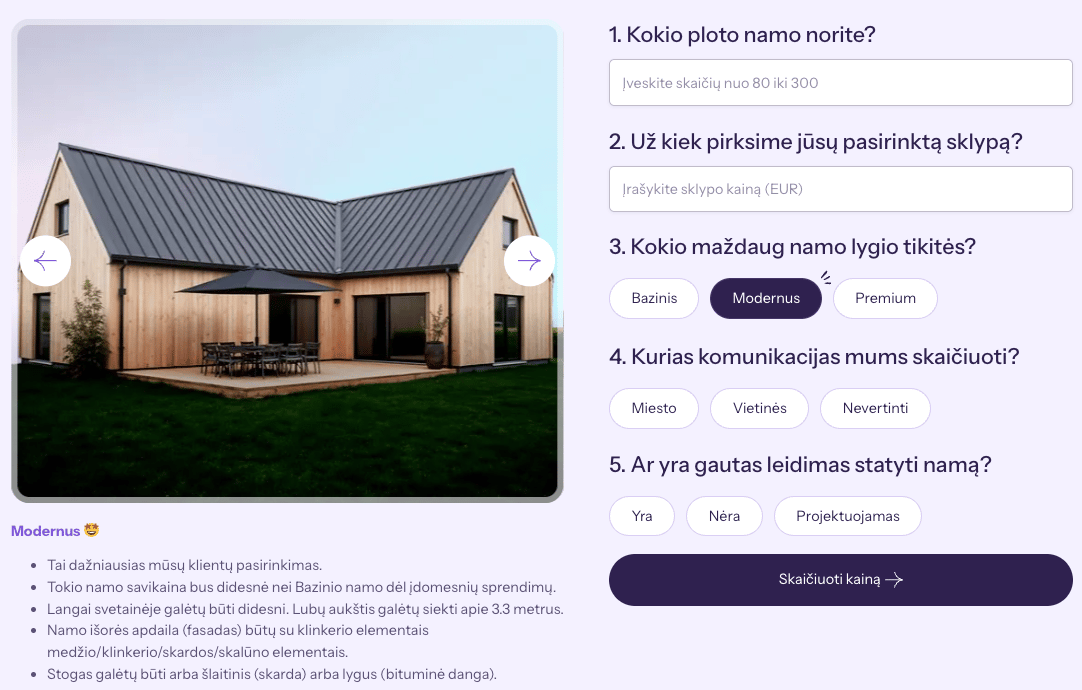 Nustok spėlioti ir pasiskaičiuok preliminarią namo kainą „Plote“ namo skaičiuoklėje 👈️