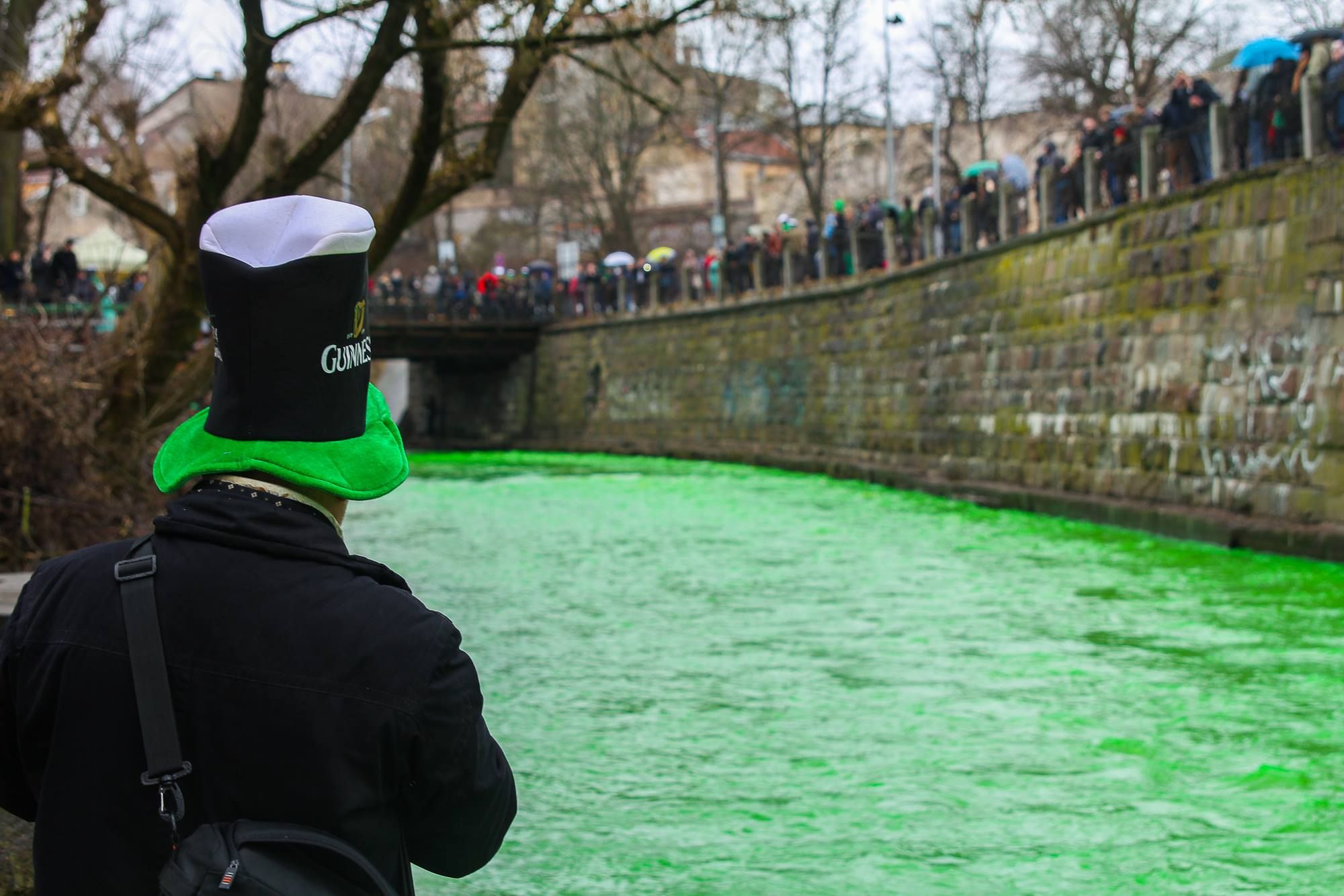 Šv. Patriko dienos minėjimas Užupyje. Renginio akcentas – žaliai nusidažiusi Vilnelė.