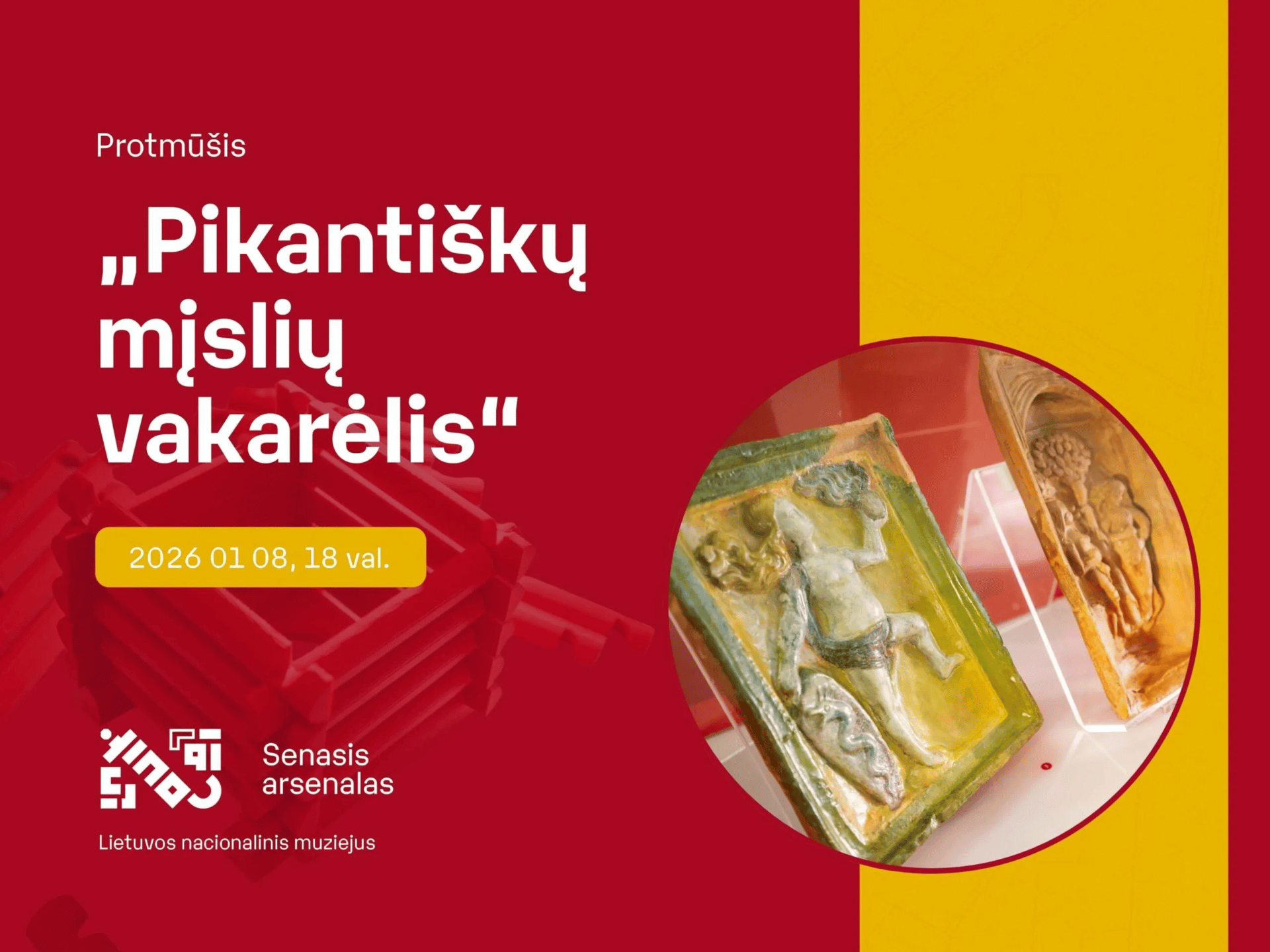 Protmūšis „Pikantiškų mįslių vakarėlis“ – tai parodos „Nešventieji radiniai“ uždarymo renginys, kviečiantis jaunuolius ir suaugusiuosius į smagų, netikėtą ir šiek tiek provokuojantį žinių išbandymą | Senasis arsenalas (Arsenalo g. 3) | 18 val.