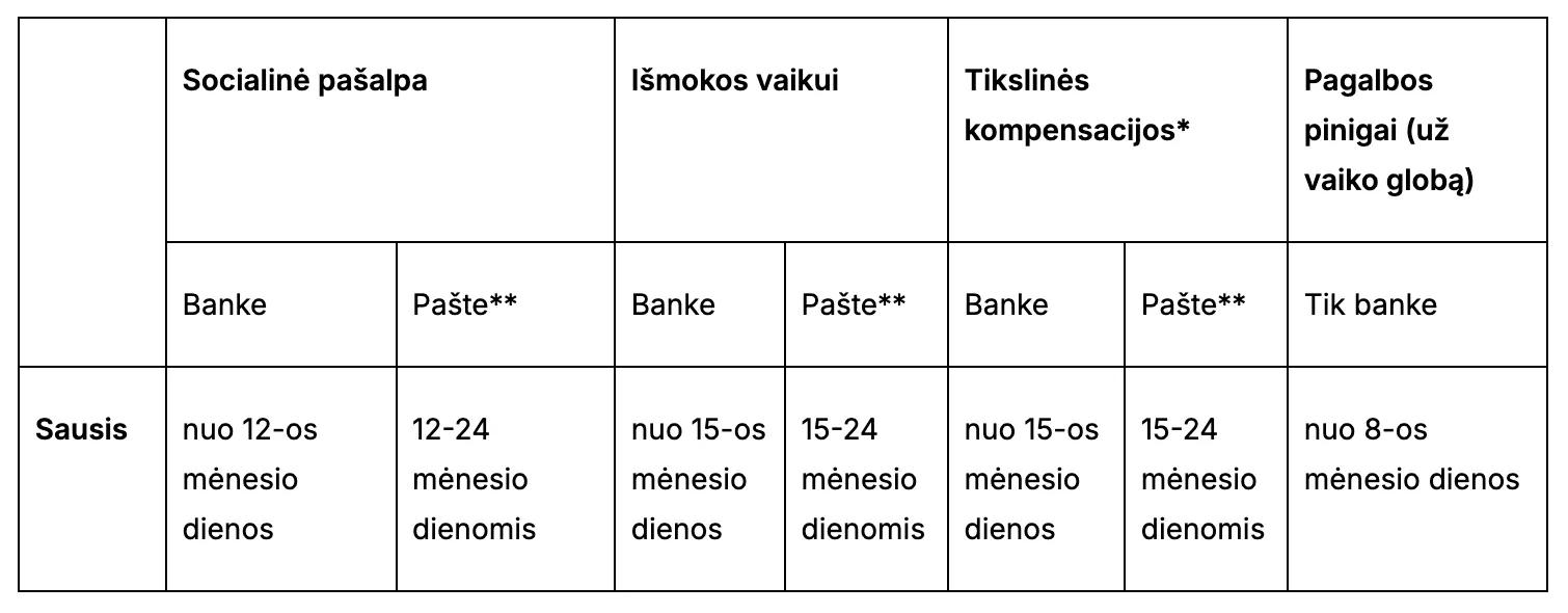 Piniginės paramos išmokėjimo grafikas 2026 m. sausio mėnesį: