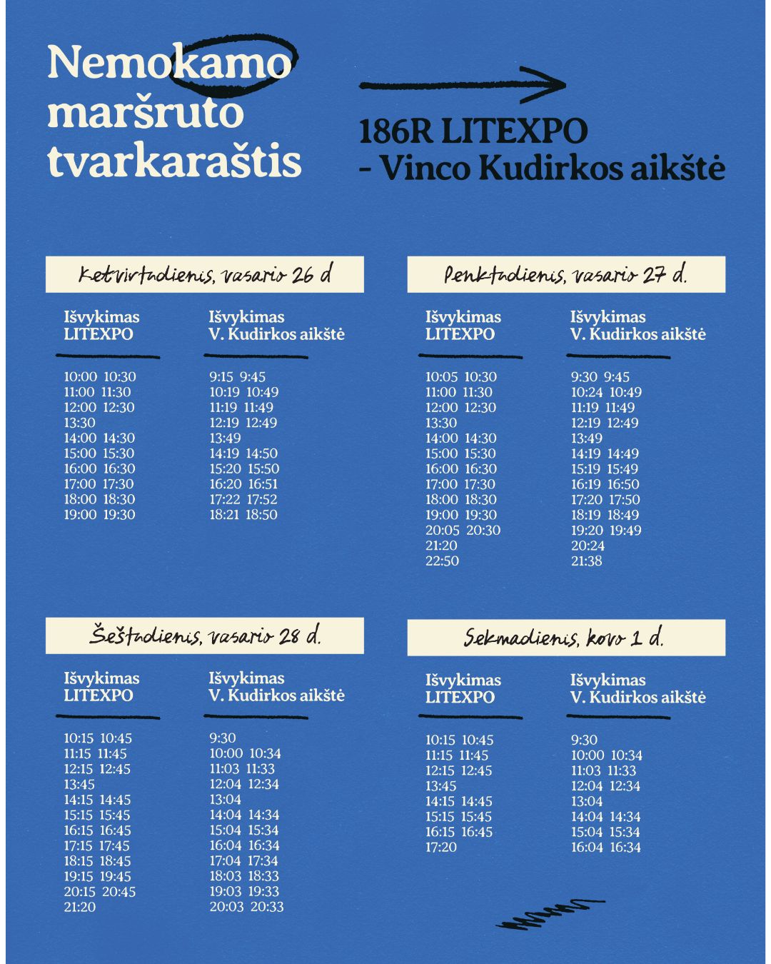 Detali knygų mugės programa – čia, o žemiau gali susipažinti su autobusų grafikais, kurie padės lengvai ir nemokamai pasiekti mugės vietą 👇